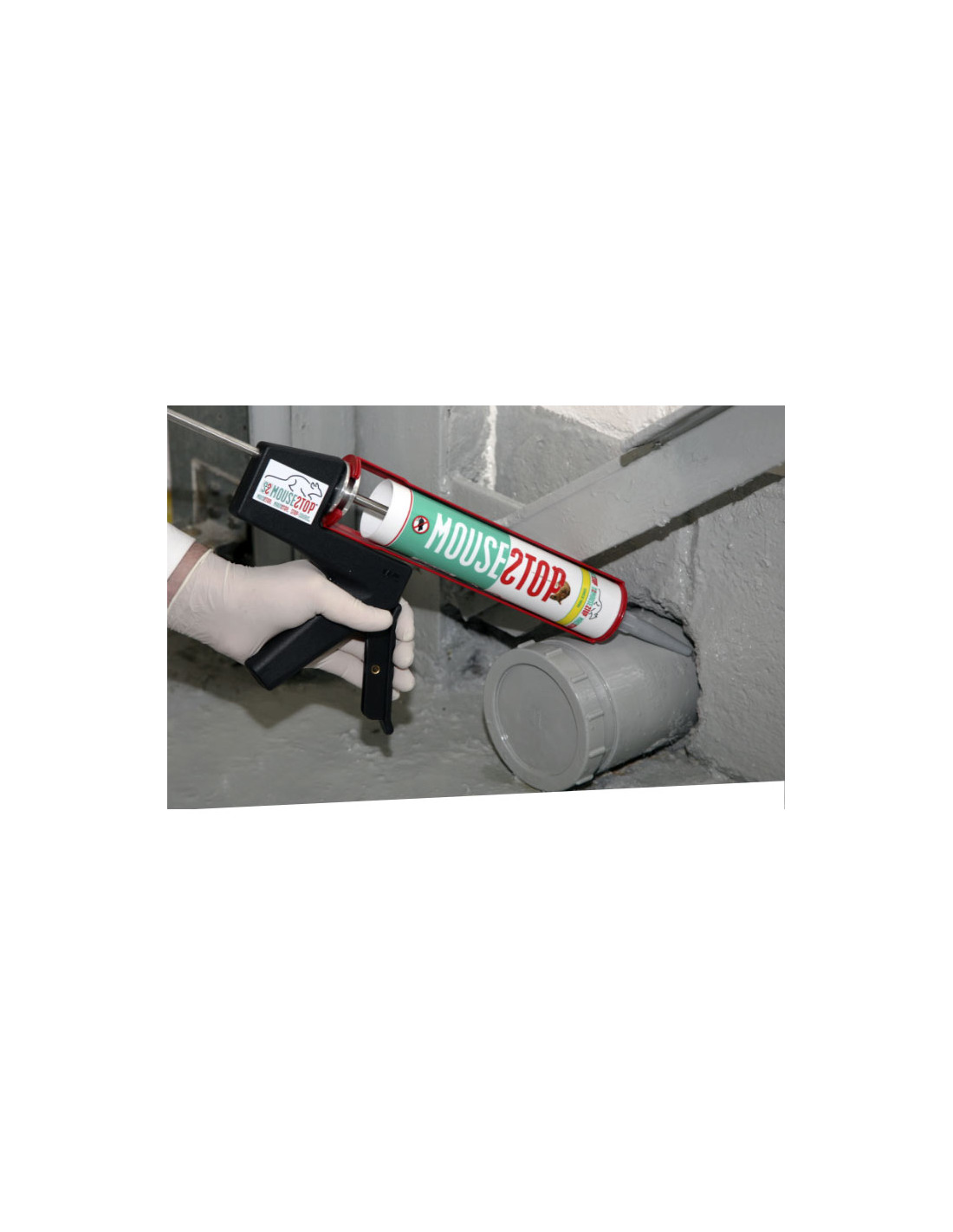 MouseStop est adapté au rebouchage des ouvertures, fentes et passages présents sur les tuyaux et conduits en PVC, afin d’empêcher l’intrusion des rats et des souris.